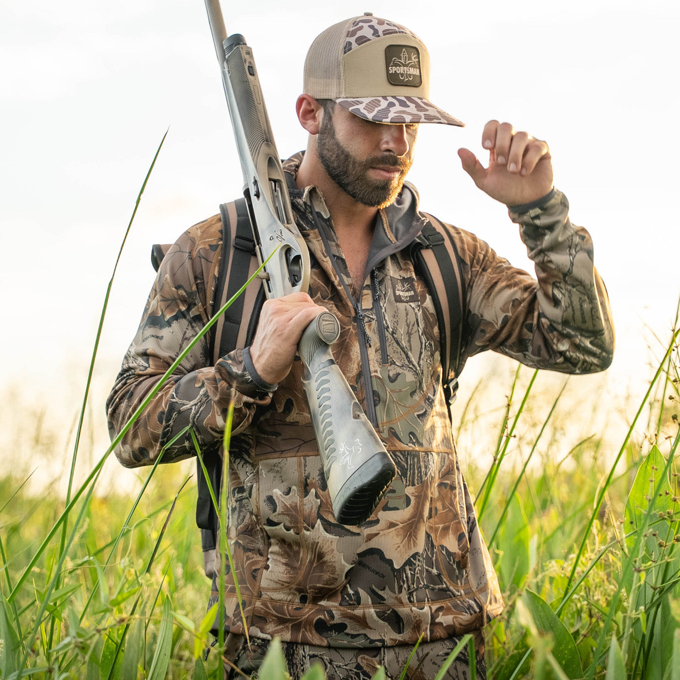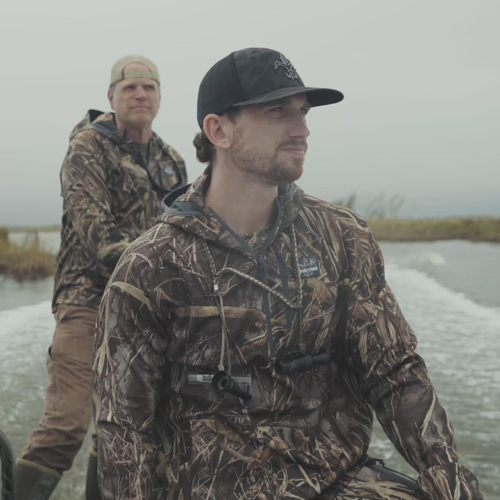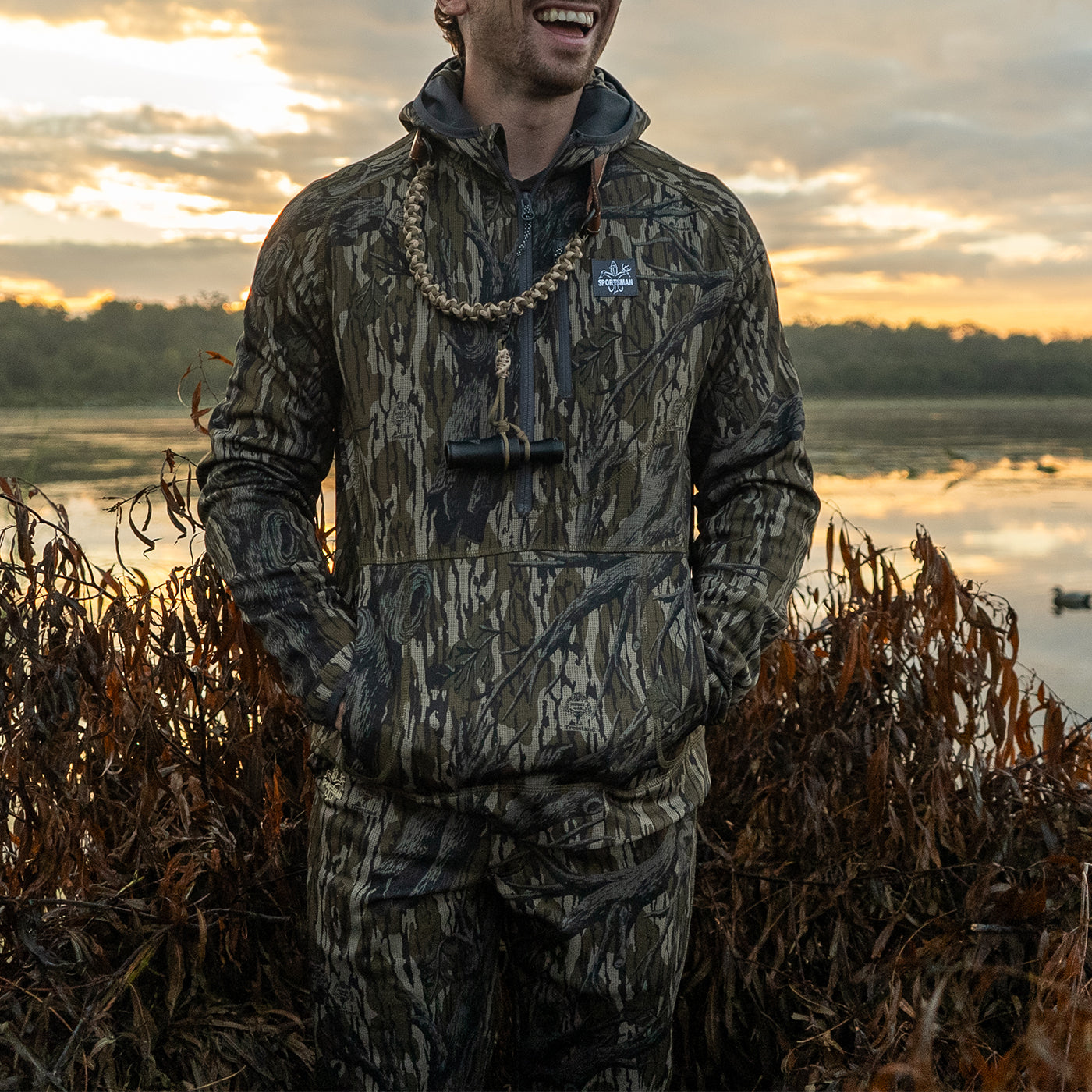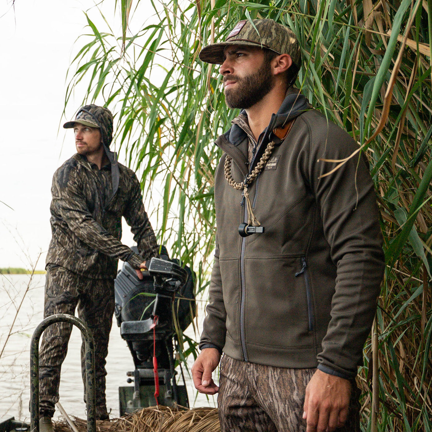 Built for active outdoorsmen, the Outbound Jacket is lightweight, quiet, and water-resistant—perfect for hunting, fishing, or everyday wear. A bonded microfleece lining adds warmth and comfort, while a retractable face mask offers extra protection from wind and cold. Half-zips feature magnetic kangaroo pockets, and full-zips include dual zipper hand pockets for secure storage. Available in Mossy Oak Bottomland, Mossy Oak Treestand, Realtree Advantage Wetlands, Realtree Advantage Classic, and Old School Camo, this versatile jacket has been our best-selling fall favorite for three years.